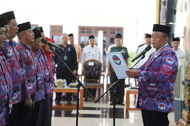 Pelantikan sekaligus pengambilan sumpah ketua PPDI serta pengurus baru periode 2025-2030, dilantik Ketua PPDI Provinsi Jawa Timur, H Sutoyo M Muslih di pendopo Kabupaten Jombang, Rabu 15 Oktober 2025.