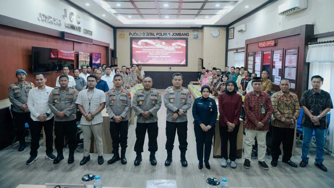 Kedatangan tim Puslitbang disambut hangat Kapolres Jombang, AKBP Ardi Kurniawan di Ruang Jombang Command Center (JCC) Polres Jombang, Selasa (22/4/2025).
