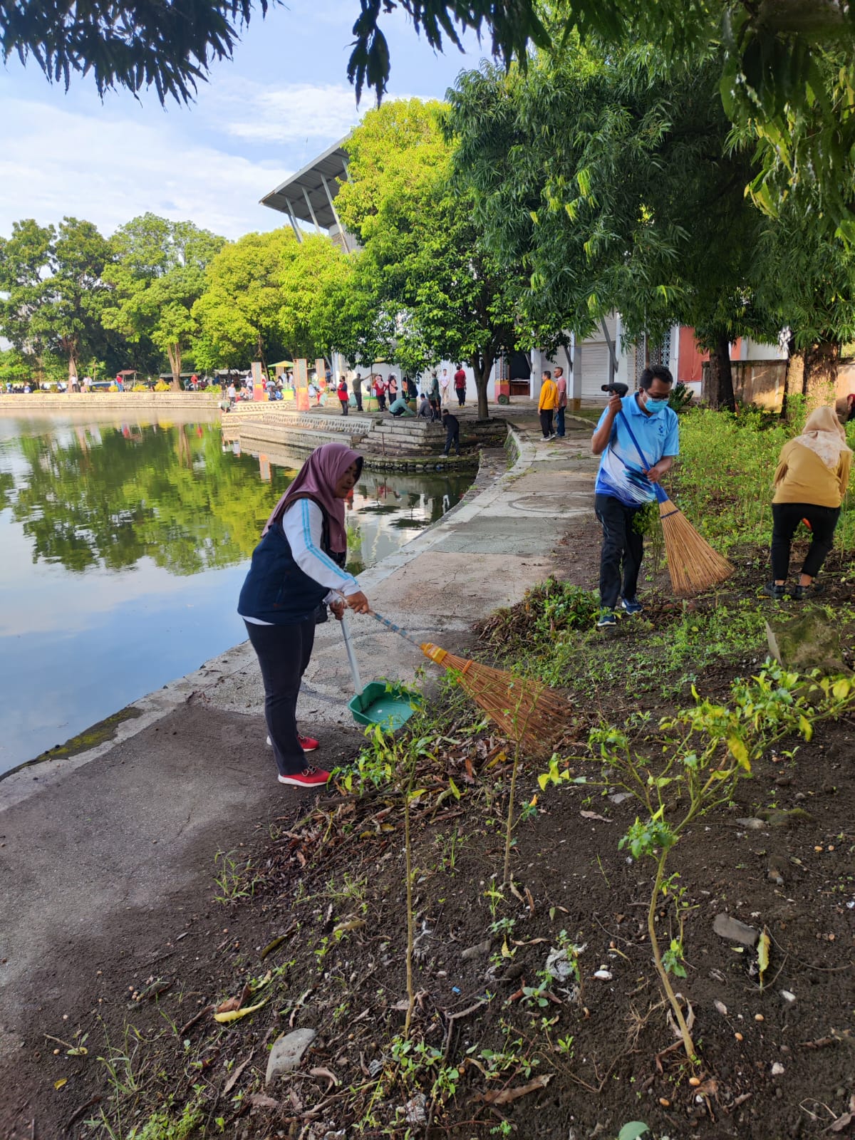 “Jumat Bersih kali ini dipusatkan di Tirta Wisata dan Taman Kebon Ratu, sesuai arahan Pak Sekda. Kita bersama sama gotong royong membuat kawasan ini bersih dan tetap asri,” ujar Ida Khumaidah Sekretaris Dinas Kominfo di sela-sela kegiatannya menyapu dan memungut sampah bersama karyawan karyawati Dinas Kominfo.