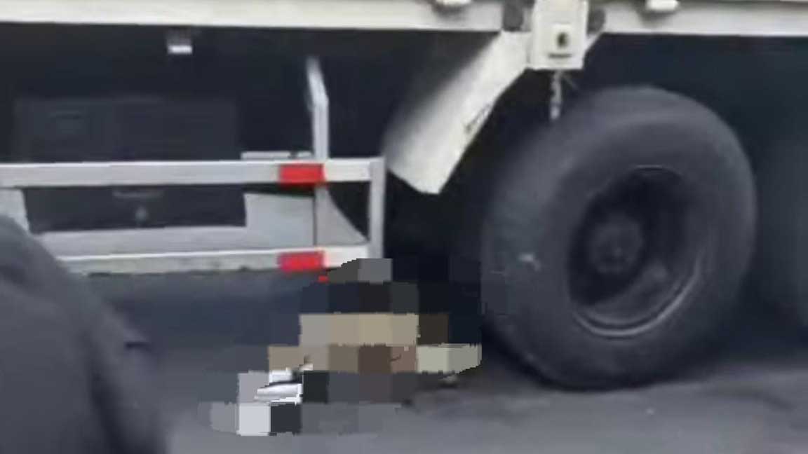 Kondisi korban terlindas truk di Jalan Raya Ngoro - Pungging, Kabupaten Mojokerto.